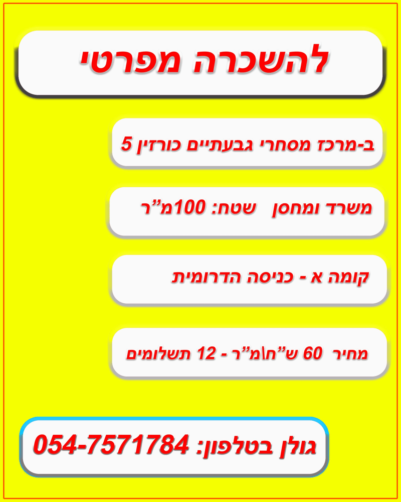 מידע נוסף אודות חנות/שטח מסחרי בכורזין 5 גבעתיים