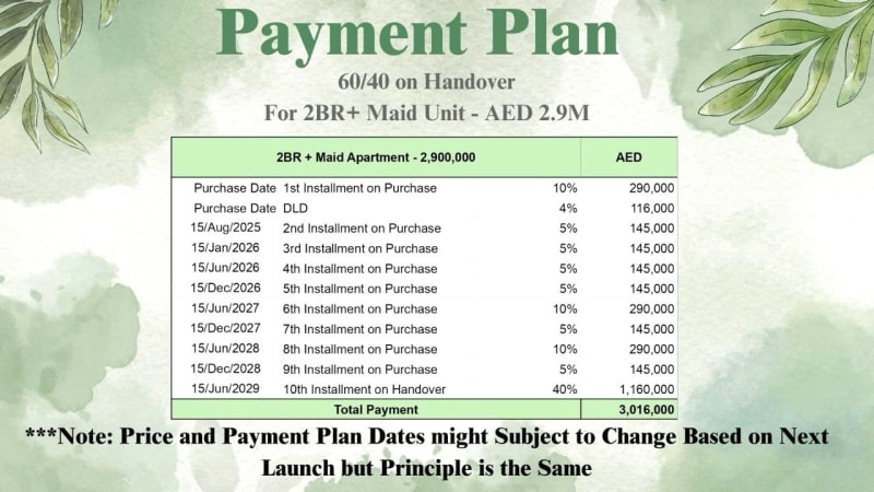 🍃 Уникальное предложение🍃 🌳 первый в Дубае ЖК в лесу 🌳🌳 ЛЕС из 40.000 деревьев 🌳 Продаем 2 комнатные апартаменты Ghaf Woods Phase 3 Capria ОАЭ, город Дубай Новостройка в Дубае Доходность 6-8% К сдачи проекта показатель вырастет на 40% План оплаты: ▪Гибкие условия рассрочки 60/40 ▪Первоначальный взнос 10% ▪В период строительства 50% ▪При завершении строительства 40% Dubailand — один из самых перспективных районов Дубая Что входит в собственность: 🔹Апартаменты: от 115 м² до 123 м² 🔹Дата сдачи: 4 квартал 2028 года 🔹Гостиная с обеденной зоной 4,3x5,9 м² (обеденная зона 3,6x4,8 м², гостиная 5,5x4,3 м²) 🔹Кухня 2,9x3 м² (4,8x2,9 м²) 🔹Спальня 3,3x3,5 м² с гардеробной и ванной (3,2x2,4 м²) 🔹Спальня 3,5x3,2 м² с гардеробной и ванной (3,5x3,8 м²) 🔹3 Ванные комнаты 🔹Ванная комната 1,8x1,8 м² 🔹Панорамное и тихое место 🔹Вид на лес 🔹Услуги горничной Описание общей территории: 🔸Зоны отдыха в лесу 🔸Велнес-центры 🔸Общественные парки 🔸Инфинити-бассейн 🔸Велосипедные дорожки 🔸Фитнес-центр 🔸Центр здоровья 🔸Сады для детей, школа 🔸Центр езды на горных велосипедах 🔸Лаунжи на свежем воздухе 🔸Сад с фруктовыми деревьями 🔸Пространства для тай-чи и медитации 🔸20 минут до Mall of the Emirates 🔸20 минут до Dubai Airport цена: $ от 648 000