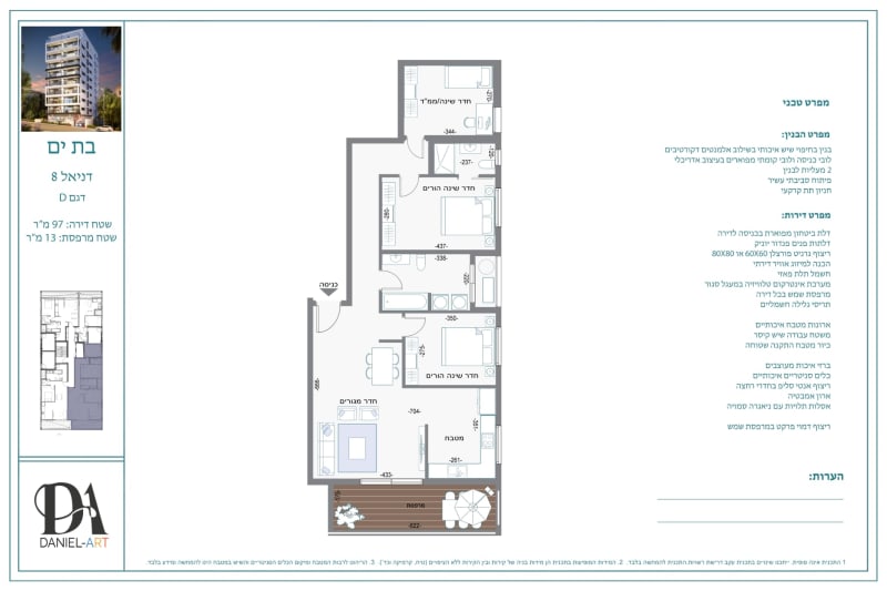 דירה למכירה 4 חדרים בדניאל בת ים בעלת שטח 97, מרפסות שמש: 1, שירותים: 2, אמבטיות: 2, כיווני אוויר: צפון, מזרח, חניות: 1, קומה: 5, מעליות: 2, כיווני אוויר: צפון, מזרח, תוספות:: מיזוג, יחידת הורים, משופצת, ממ״ד, גישה לנכים.