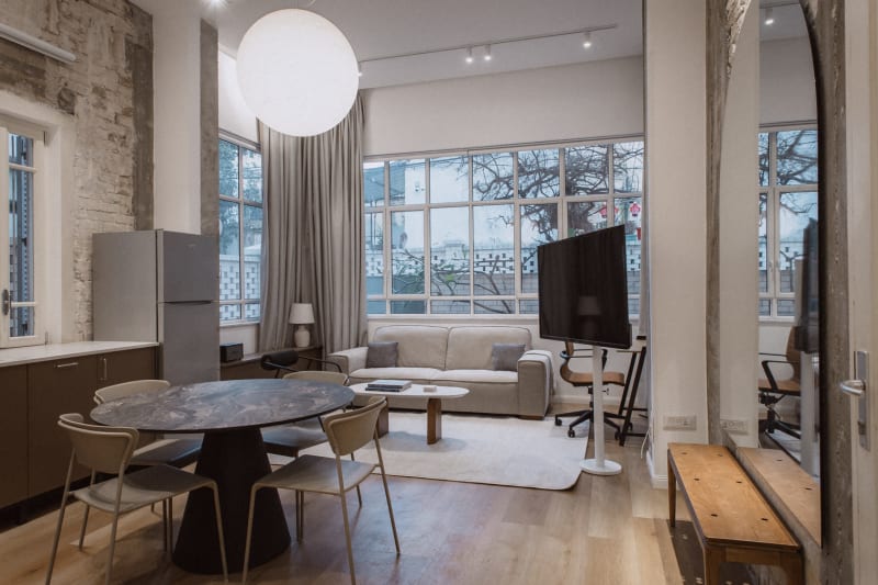 Show up and start living from day one in Tel Aviv with this spacious two bedroom apartment. You’ll love coming home to this thoughtfully furnished, beautifully designed, and fully equipped Nachalat Binyamin home. (ID #TLV52) Rates vary depending on the duration of stay, season, and other parameters. For exact pricing and additional pricing components, please visit our website and enter your desired move-in and move-out dates. The rate is applicable when billed upfront; it can be higher if billed in multiple payments. Were you looking for an unfurnished lease? Try Blueground instead and upgrade from unfurnished to furnished living: Furnished at rates comparable to unfurnished No setup or furniture costs - save thousands Move-in ready - save time, just bring your suitcase Designed with you in mind In this apartment, you’ll find a thoughtfully designed space complete with beautiful furniture and a fully equipped kitchen in this two bedroom property. And, thanks to our superior quality mattresses, luxury linens, and towels, you can relax knowing you’ll always feel comfortably at home. When you’re ready for some fun, you can take in the Tel Aviv vibes or bring the entertainment to you with the premium wireless speaker or smart TV. Sleeping arrangements Queen Bed, 63in/160cm Queen Bed, 63in/160cm Amenities Building amenities unique to this two bedroom apartment include an on-site: Washing machine Rooftop Arrival and ongoing support Full Maintenance and Technical Support / cleaning requests at a click of a button. Other things to note This apartment has flexible lease options, allowing you to book it for one month, a year, or more. This apartment can be booked for short term stays, with the option to extend to one month or longer. Please keep in mind that this is a walk up building. The displayed price excludes VAT. Israeli citizens must add 18% VAT, which also applies to reservations without verified tourist status (B2/B3/B4 voucher).