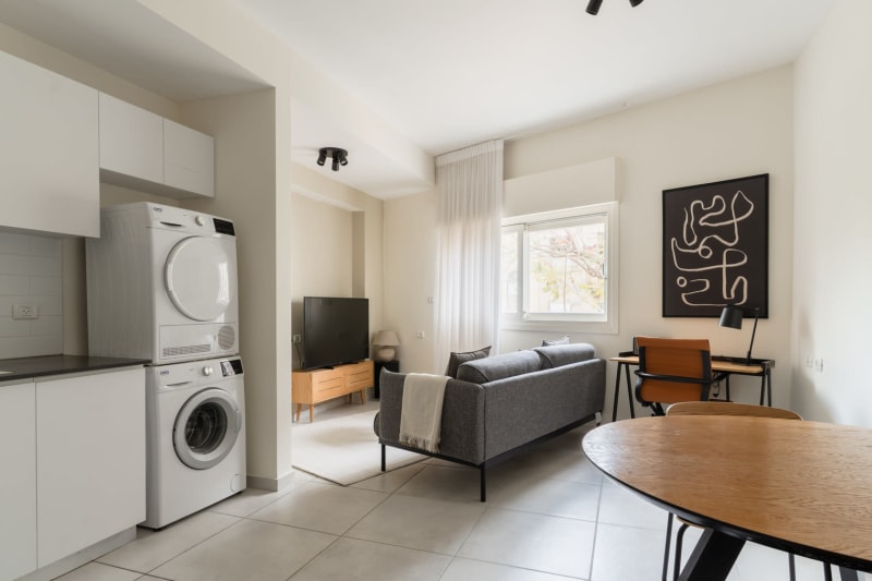 Show up and start living from day one in Tel Aviv with this charming one bedroom Blueground apartment. You’ll love coming home to this thoughtfully furnished, beautifully designed, and fully equipped Nachalat Binyamin home. (ID #TLV105) Rates vary depending on the duration of stay, season, and other parameters. For exact pricing and additional pricing components, please visit our website and enter your desired move-in and move-out dates. The rate is applicable when billed upfront; it can be higher if billed in multiple payments. Were you looking for an unfurnished lease? Try Blueground instead and upgrade from unfurnished to furnished living: Furnished at rates comparable to unfurnished No setup or furniture costs - save thousands Move-in ready - save time, just bring your suitcase Designed with you in mind As with any Blueground apartment, you’ll find a thoughtfully designed space complete with beautiful furniture and a fully equipped kitchen in this one bedroom property. And, thanks to our superior quality mattresses, luxury linens, and towels, you can relax knowing you’ll always feel comfortably at home. When you’re ready for some fun, you can take in the Tel Aviv vibes or bring the entertainment to you with the premium wireless speaker or smart TV. Amenities Building amenities unique to this one bedroom apartment include an on-site: Elevator Washing machine Pets allowed Arrival and ongoing support Full Maintenance and Technical Support / cleaning requests at a click of a button. Other things to note Pet fees may apply. The displayed price excludes VAT. Israeli citizens must add 18% VAT, which also applies to reservations without verified tourist status (B2/B3/B4 voucher).