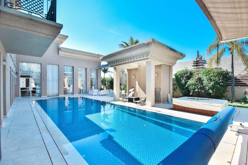 למכירה בקיסריה - וילה מפוארת ברמה הגבוהה ביותר! להרגיש מלוכה כל יום מחדש - וילה פרטית ענקית עם בריכה ענקית בחצר, עיצוב יוקרתי, סוויטות מפנקות, מטבח מודרני וסלון מרווח עם יציאה לבריכה. מיקום שקט ויוקרתי, קרוב לים, מסלולי גולף ולמרכז קניות. להיכנס לגור בארמון אמיתי!